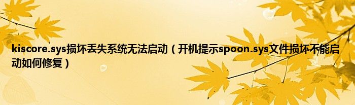 大家好,综合小编来为大家讲解下kiscore.sys损坏丢失系统无法启动,开机提示spoon.sys文件损坏不能启动如何修复这个很多人还不知道,现在让我们一起来看看吧!