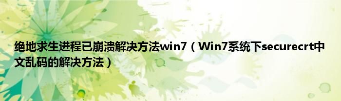 大家好,综合小编来为大家讲解下绝地求生进程已崩溃解决方法win7,Win7系统下securecrt中文乱码的解决方法这个很多人还不知道,现在让我们一起来看看吧!