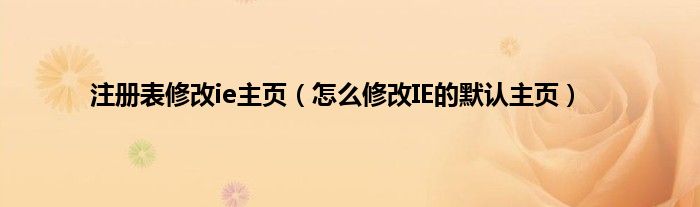 大家好,综合小编来为大家讲解下注册表修改ie主页,怎么修改IE的默认主页这个很多人还不知道,现在让我们一起来看看吧!