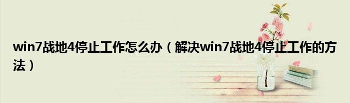 win7战地4停止工作怎么办(解决win7战地4停止工作的方法)