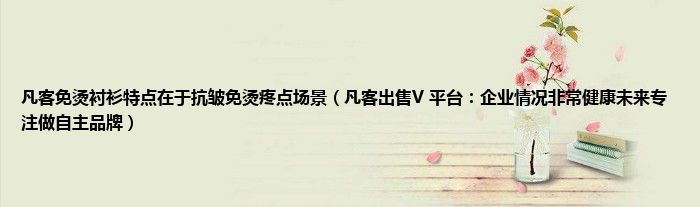 大家好,综合小编来为大家讲解下凡客免烫衬衫特点在于抗皱免烫疼点场景,凡客出售V 平台:企业情况非常健康未来专注做自主品牌这个很多人还不知道,现在让我们一起来看看吧!