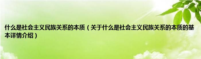 本文关于什么是社会主义民族关系的本质的基本详情介绍就讲解完毕,希望对大家有所帮助。