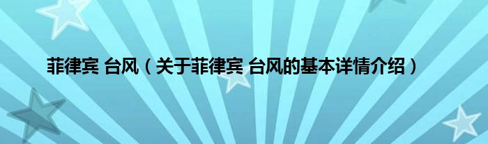 本文关于菲律宾 台风的基本详情介绍就讲解完毕,希望对大家有所帮助。
