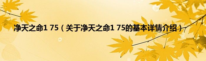净天之命1 75(关于净天之命1 75的基本详情介绍)