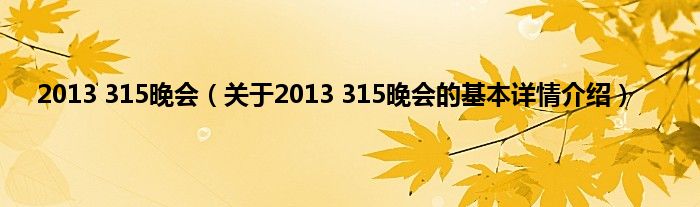 2013 315晚会(关于2013 315晚会的基本详情介绍)