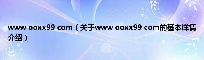 www ooxx99 com(关于www ooxx99 com的基本详情介绍)