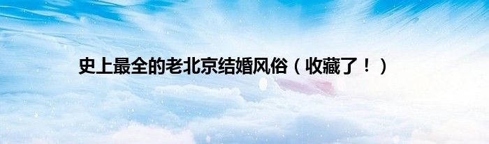 本文史上最全的老北京结婚风俗,收藏了!到此分享完毕,希望对大家有所帮助。