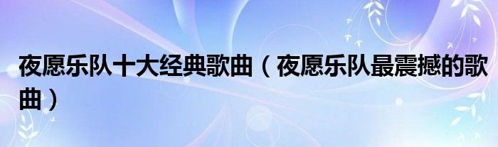 关于夜愿乐队十大经典歌曲,夜愿乐队最震撼的歌曲这个很多人还不知道,今天菲菲来为大家解答以上的问题,现在让我们一起来看看吧!