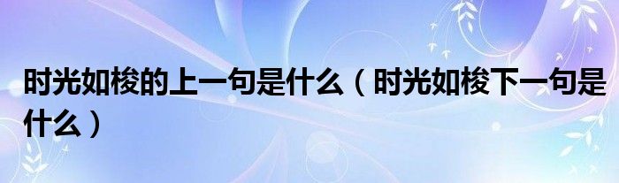 大家好,小晋来为大家解答以下问题,关于时光如梭的上一句是什么,时光如梭下一句是什么很多人还不知道,今天让我们一起来看看吧!