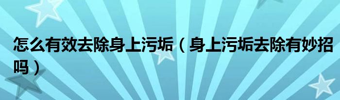 大家好,小晋来为大家解答以下问题,关于怎么有效去除身上污垢,身上污垢去除有妙招吗很多人还不知道,今天让我们一起来看看吧!