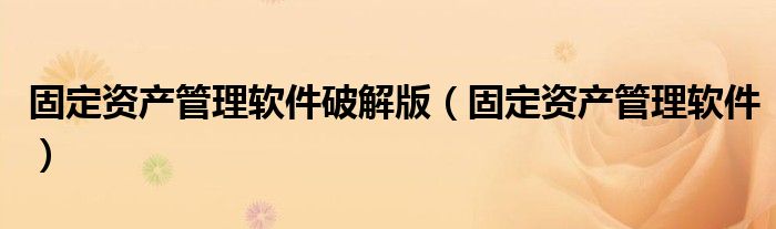 大家好,小晋来为大家解答以下问题,关于固定资产管理软件破解版,固定资产管理软件很多人还不知道,今天让我们一起来看看吧!