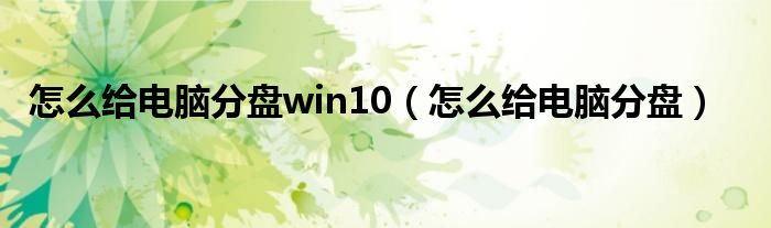 大家好,小晋来为大家解答以下问题,关于怎么给电脑分盘win10,怎么给电脑分盘很多人还不知道,今天让我们一起来看看吧!