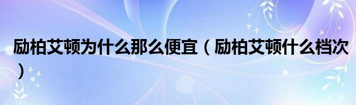 励柏艾顿为什么那么便宜(励柏艾顿什么档次)
