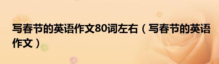大家好,小晋来为大家解答以下问题,关于写春节的英语作文80词左右,写春节的英语作文很多人还不知道,今天让我们一起来看看吧!