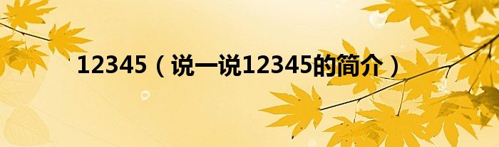 夏弥来为大家解答以下的问题,12345,说一说12345的简介,现在让我们一起来看看吧!