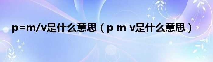 关于p=m/v是什么意思,p m v是什么意思这个很多人还不知道,今天菲菲来为大家解答以上的问题,现在让我们一起来看看吧!