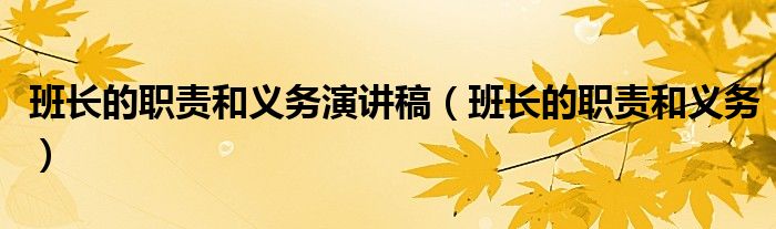 关于班长的职责和义务演讲稿,班长的职责和义务这个很多人还不知道,今天菲菲来为大家解答以上的问题,现在让我们一起来看看吧!