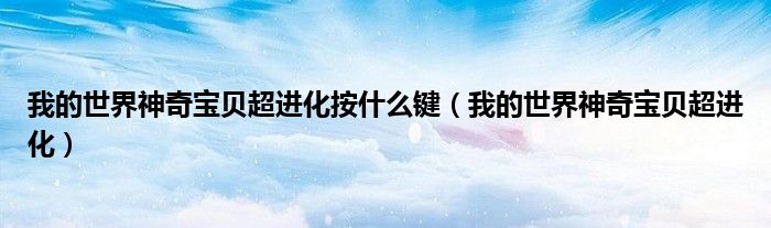 关于我的世界神奇宝贝超进化按什么键,我的世界神奇宝贝超进化这个很多人还不知道,今天菲菲来为大家解答以上的问题,现在让我们一起来看看吧!