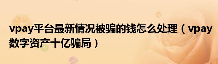 大家好,小晋来为大家解答以下问题,关于vpay平台最新情况被骗的钱怎么处理,vpay数字资产十亿骗局很多人还不知道,今天让我们一起来看看吧!