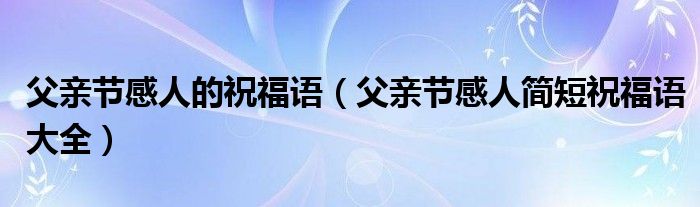 父亲节感人简短祝福语大全1. 颠沛流离,会有父爱伴随左右;世道坎坷,会有父爱激励鼓舞。父爱如灯,给我指路;父爱如帆,伴我远航。我以一颗感恩的赤子之心,祝愿父亲节日快乐!