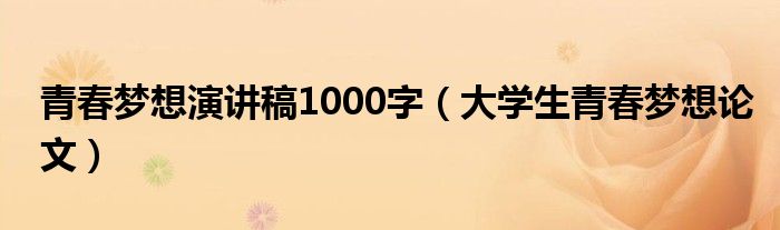 关于青春梦想演讲稿1000字,大学生青春梦想论文这个很多人还不知道,今天菲菲来为大家解答以上的问题,现在让我们一起来看看吧!