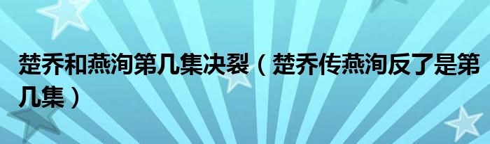 大家好,小晋来为大家解答以下问题,关于楚乔和燕洵第几集决裂,楚乔传燕洵反了是第几集很多人还不知道,今天让我们一起来看看吧!