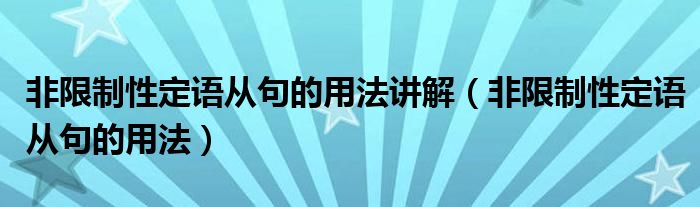 大家好,乐儿来为大家解答以下问题,非限制性定语从句的用法讲解,非限制性定语从句的用法很多人还不知道,现在让我们一起来看看吧!