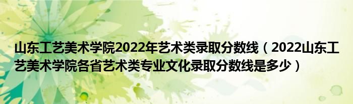 大家好,乐儿来为大家解答以下问题,山东工艺美术学院2022年艺术类录取分数线,2022山东工艺美术学院各省艺术类专业文化录取分数线是多少很多人还不知道,现在让我们一起来看看吧!