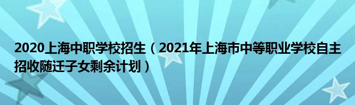 2020上海中职学校招生(2021年上海市中等职业学校自主招收随迁子女剩余计划)