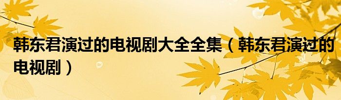 韩东君演过的电视剧大全全集(韩东君演过的电视剧)