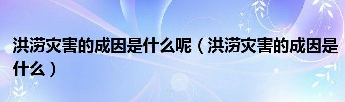 大家好,乐儿来为大家解答以下问题,洪涝灾害的成因是什么呢,洪涝灾害的成因是什么很多人还不知道,现在让我们一起来看看吧!