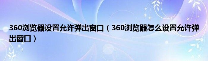 关于360浏览器设置允许弹出窗口,360浏览器怎么设置允许弹出窗口这个很多人还不知道,今天菲菲来为大家解答以上的问题,现在让我们一起来看看吧!