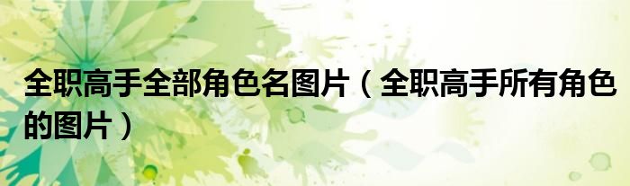 关于全职高手全部角色名图片,全职高手所有角色的图片这个很多人还不知道,今天菲菲来为大家解答以上的问题,现在让我们一起来看看吧!