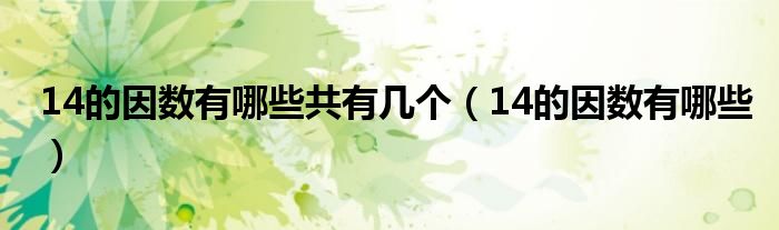 大家好,小晋来为大家解答以下问题,关于14的因数有哪些共有几个,14的因数有哪些很多人还不知道,今天让我们一起来看看吧!