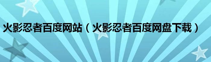 火影忍者百度网站(火影忍者百度网盘下载)