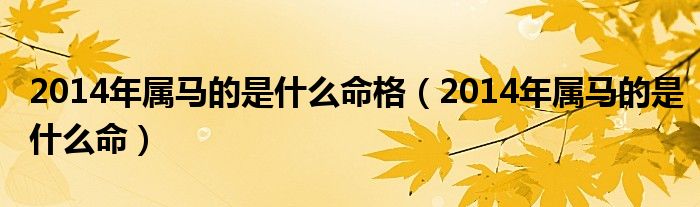 大家好,小联来为大家解答以上的问题。2014年属马的是什么命格,2014年属马的是什么命这个很多人还不知道,现在让我们一起来看看吧!