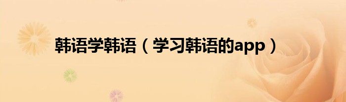 韩语学韩语(学习韩语的app)