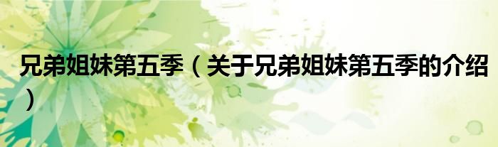 兄弟姐妹第五季(关于兄弟姐妹第五季的介绍)