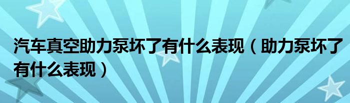 汽车真空助力泵坏了有什么表现(助力泵坏了有什么表现)