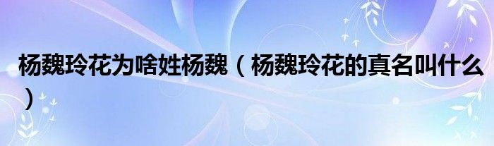 大家好,小晋来为大家解答以下问题,关于杨魏玲花为啥姓杨魏,杨魏玲花的真名叫什么很多人还不知道,今天让我们一起来看看吧!