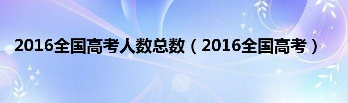 大家好,我是小科,我来为大家解答以上问题。2016全国高考人数总数,2016全国高考很多人还不知道,现在让我们一起来看看吧!