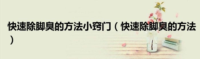大家好,乐天来为大家解答以下的问题,快速除脚臭的方法小窍门,快速除脚臭的方法很多人还不知道,现在让我们一起来看看吧!