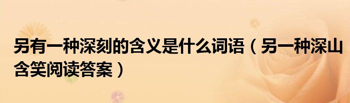 大家好,我是小科,我来为大家解答以上问题。另有一种深刻的含义是什么词语,另一种深山含笑阅读答案很多人还不知道,现在让我们一起来看看吧!