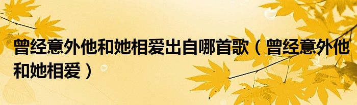 大家好,我是小科,我来为大家解答以上问题。曾经意外他和她相爱出自哪首歌,曾经意外他和她相爱很多人还不知道,现在让我们一起来看看吧!
