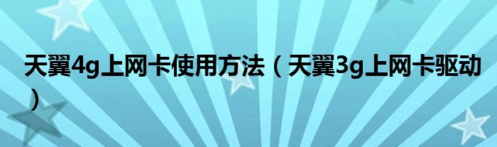 今天小饼为大家解答以下问题,关于天翼4g上网卡使用方法,天翼3g上网卡驱动很多人还不知道,现在让我们一起来看看吧!