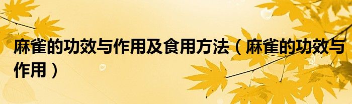 麻雀的功效与作用及食用方法(麻雀的功效与作用)