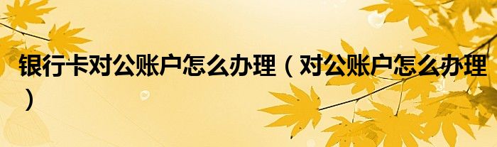 银行卡对公账户怎么办理(对公账户怎么办理)