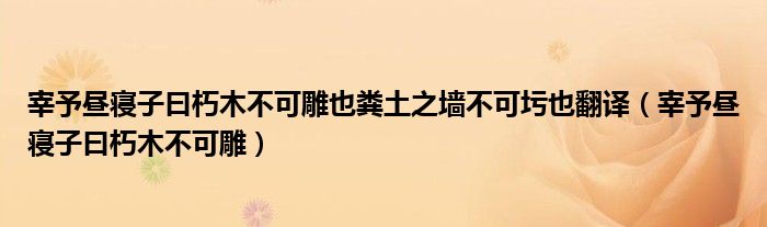 大家好,小联来为大家解答以上的问题。宰予昼寝子曰朽木不可雕也粪土之墙不可圬也翻译,宰予昼寝子曰朽木不可雕这个很多人还不知道,现在让我们一起来看看吧!