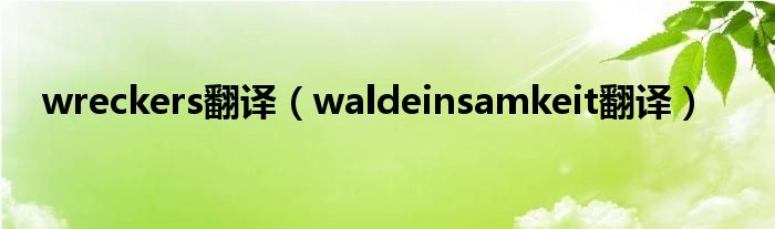 大家好,我是小科,我来为大家解答以上问题。wreckers翻译,waldeinsamkeit翻译很多人还不知道,现在让我们一起来看看吧!