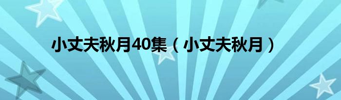 大家好,我是小科,我来为大家解答以上问题。小丈夫秋月40集,小丈夫秋月很多人还不知道,现在让我们一起来看看吧!